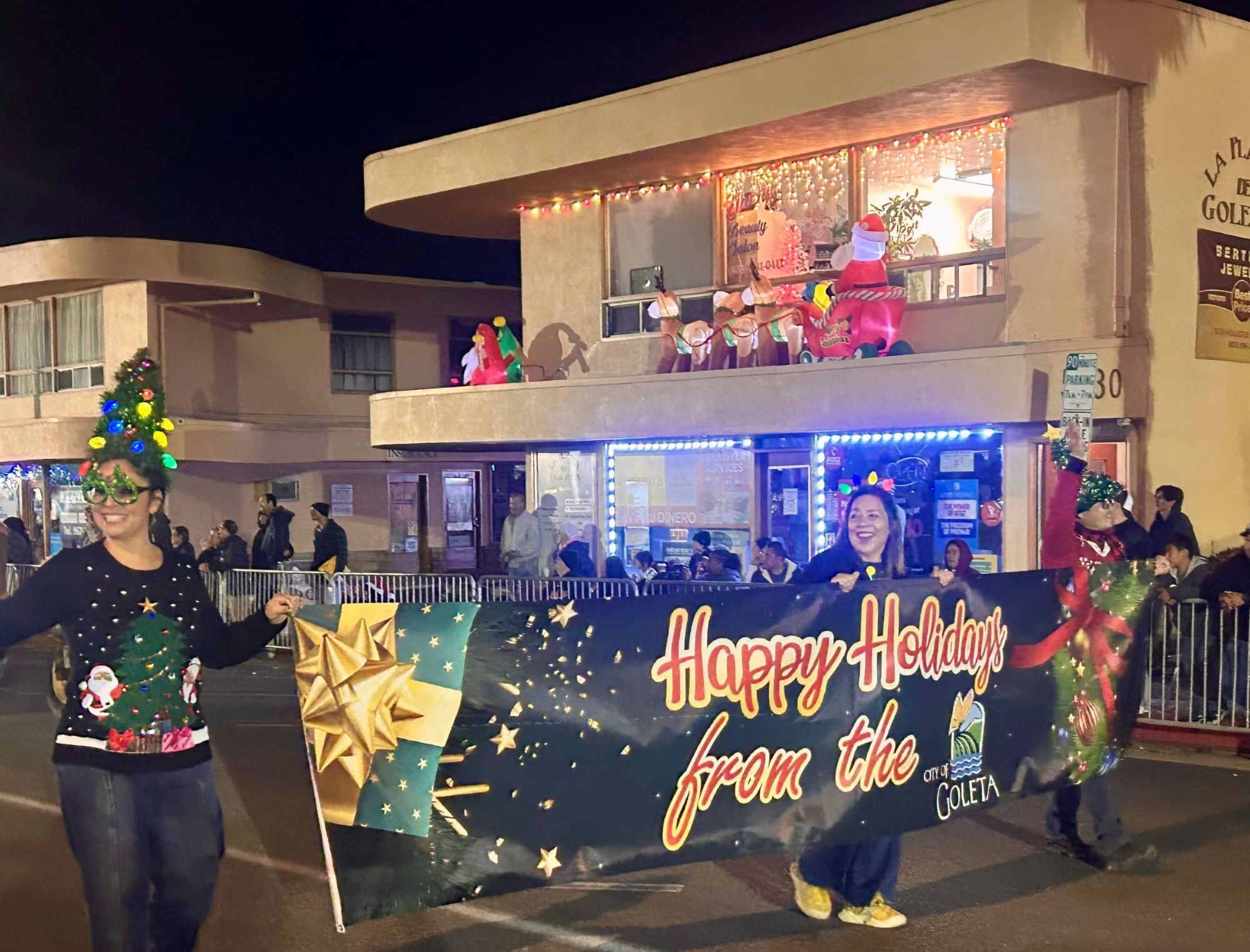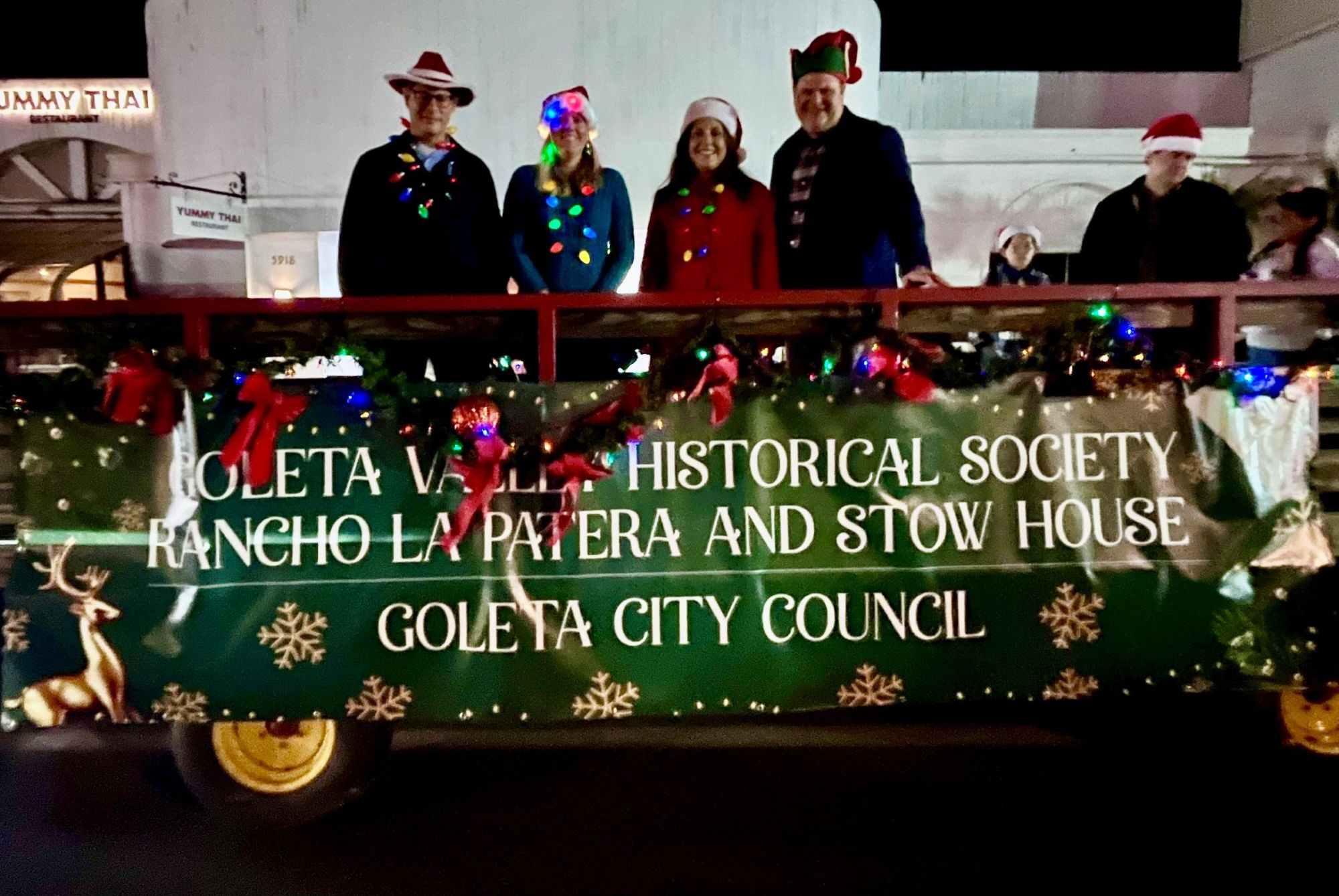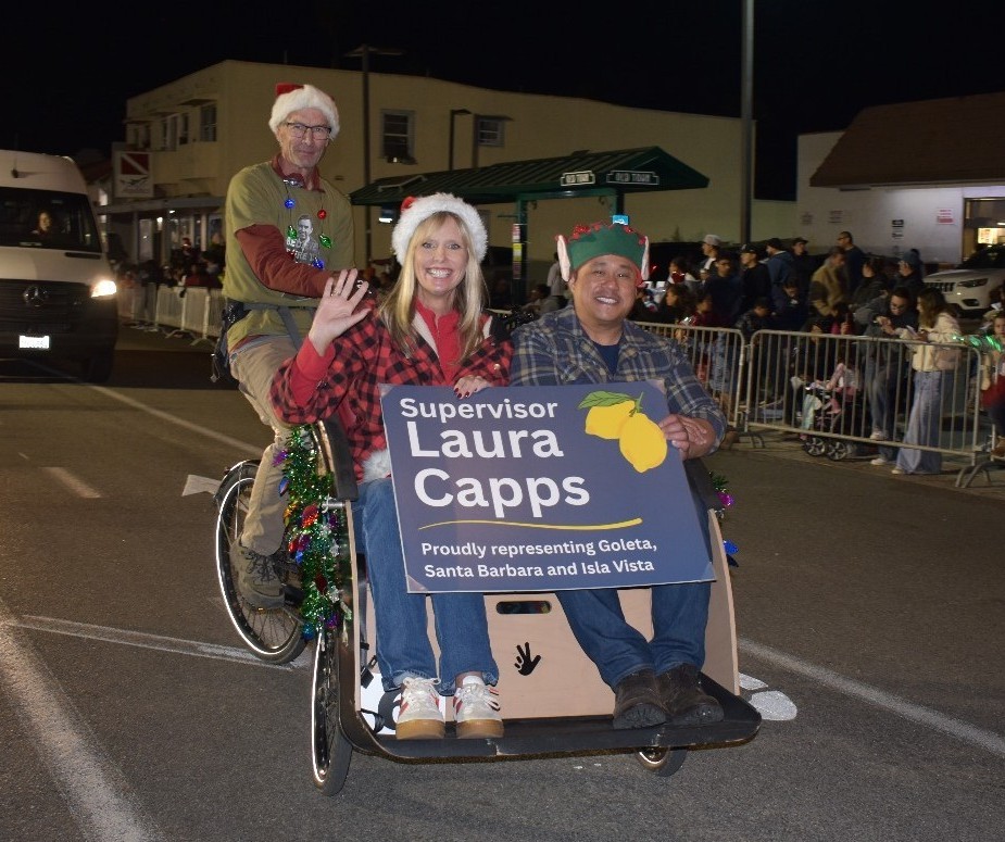The City of Goleta was pleased to participate once again this year. Thank you to the Goleta Valley Historical Society (Rancho La Patera & Stow House) for inviting the Goleta City Council and their family members to ride in the parade on its vintage wagon. The Goleta Valley Library Bookvan also cruised the parade route as did Goleta staff with a www.GoodLandGoodShopping.com banner to promote shopping local this holiday season. Watch a video clip capturing the City’s participation at the beginning of the parade.