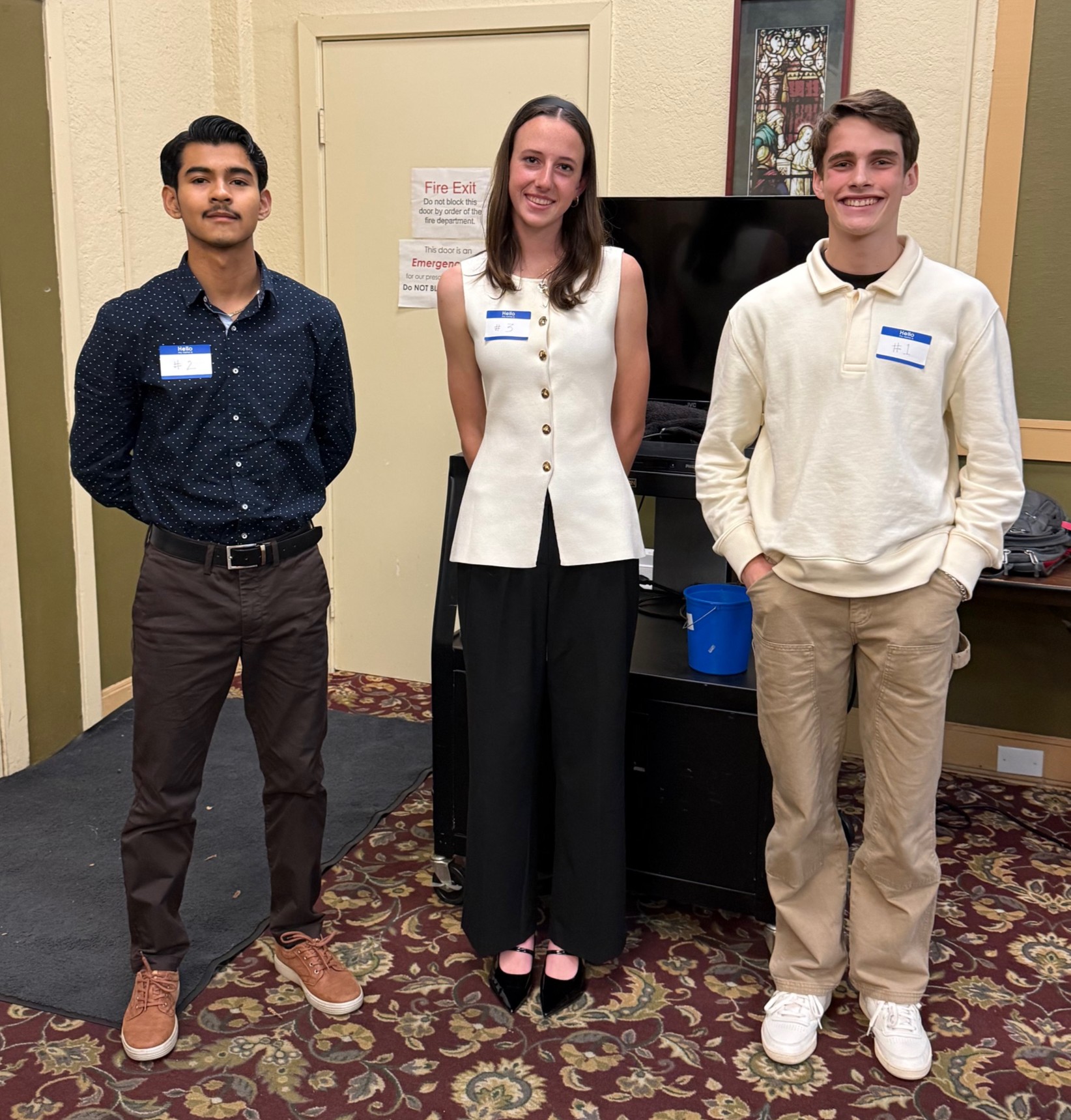 The three student finalists for the 2025 Student Speaker Contest from Left to Right: Angel Hernandez from Santa Barbara High School, Reese Large (Winner) from San Marcos High School, and Marshal Graham from Laguna Blanca School