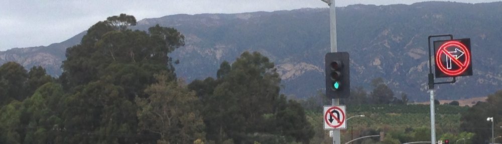 Bicyclists and motorists traveling northbound on Los Carneros will notice a change to the Class II bike lane approaching the southbound 101 freeway ramp. In addition to the traditional Class II bike lane which will be located to the left of the exclusive right turn lane (commonly used by avid bicyclists), there is now an additional bike lane for less experienced riders located to the right of the exclusive right turn lane and separated from the right turn lane with a two-foot buffer area.