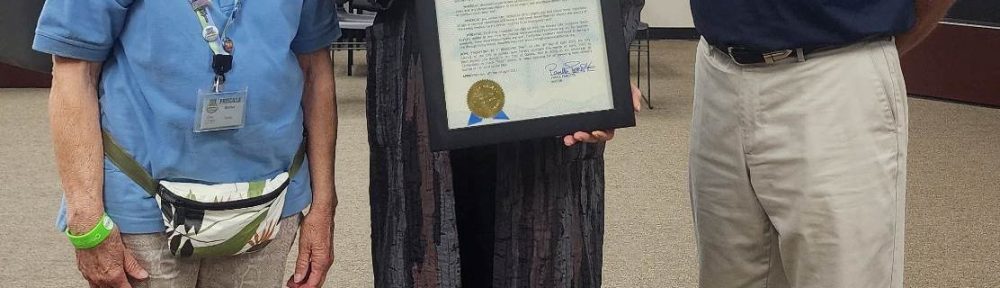Scott Barnes and Priscilla Marquez receiving their proclamation from City Council