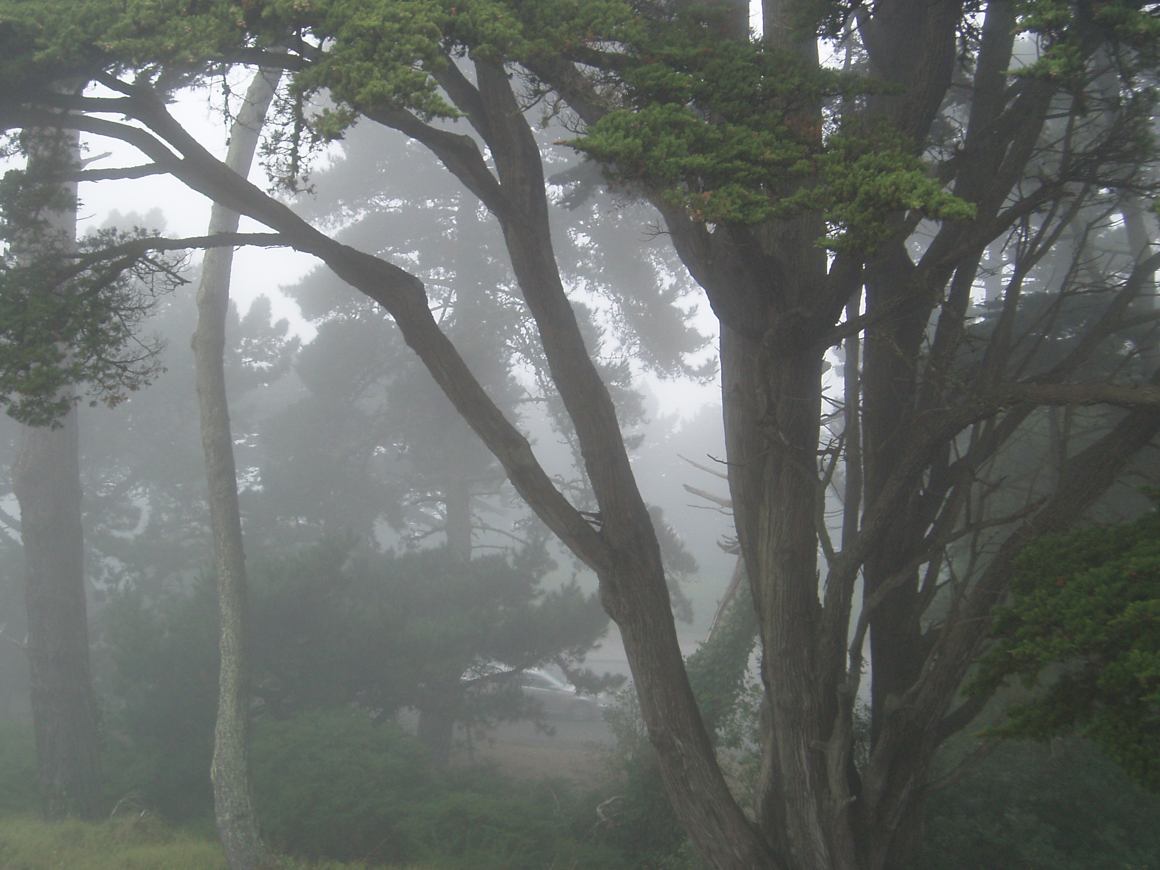 After visiting the Legion of Honor Museum in San Francisco we came out to find the fog had rolled in. I tried to capture the mood of the El Cid statue in the mist but then I spotted these trees beside the museum. Much better!